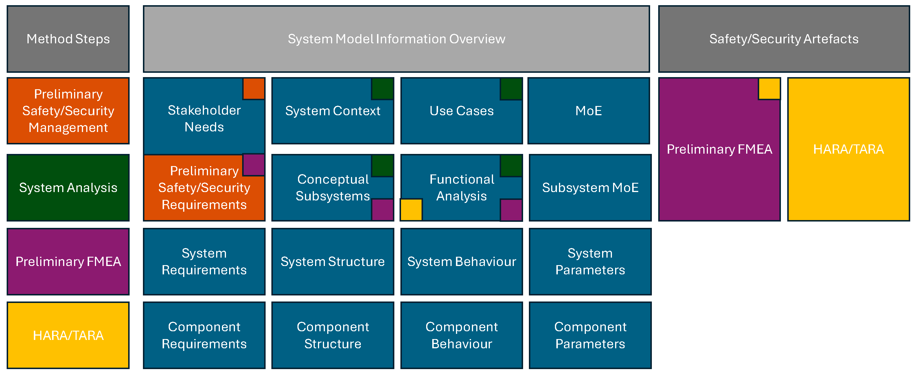 - Nolte, B.; Stein, A.; Vietor, T. Designing a Method for Identifying Functional Safety and Cybersecurity Requirements Utilizing Model-Based Systems Engineering. Appl. Syst. Innov. 2025, 8, 45. [Google Scholar] [CrossRef]