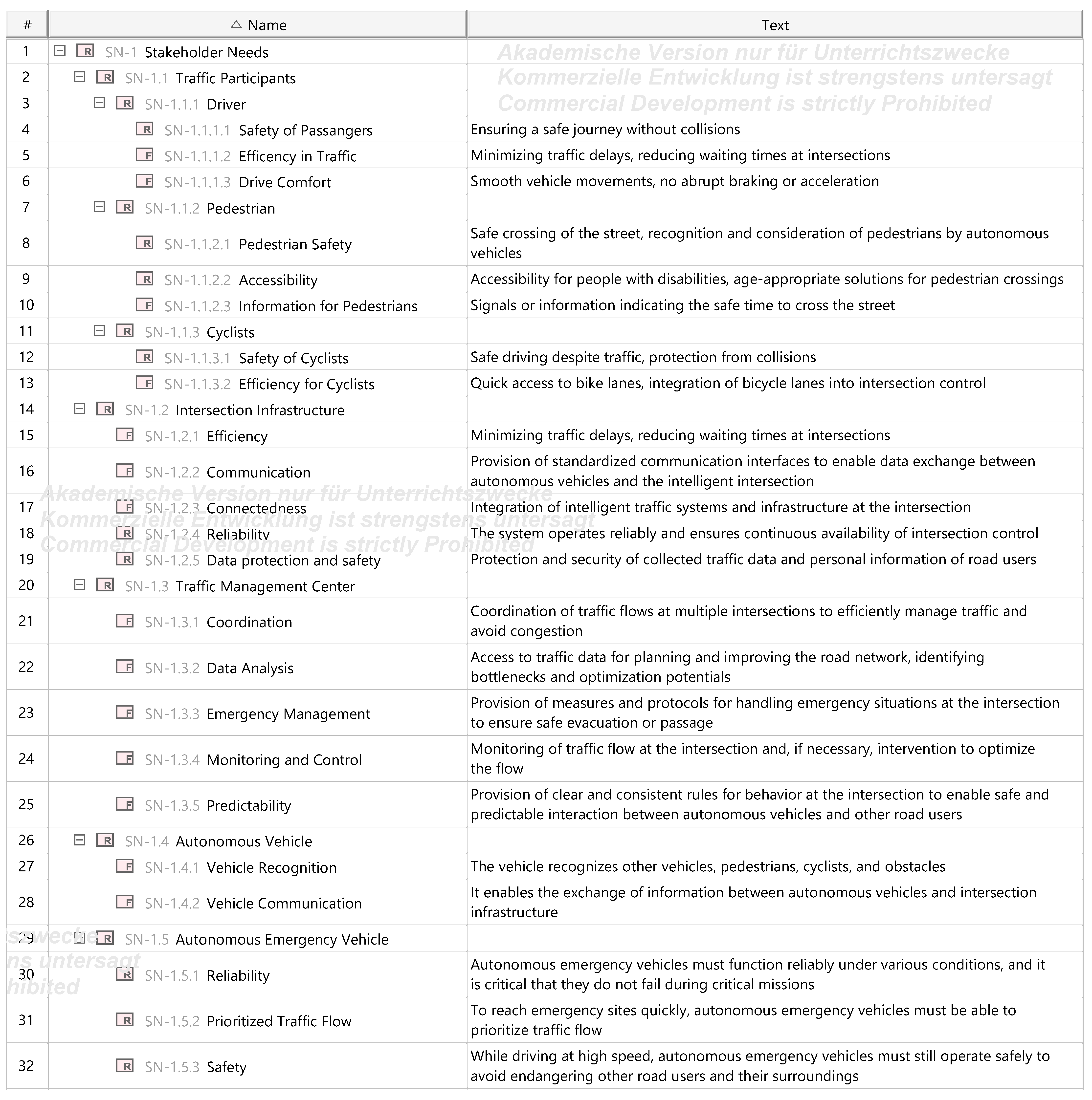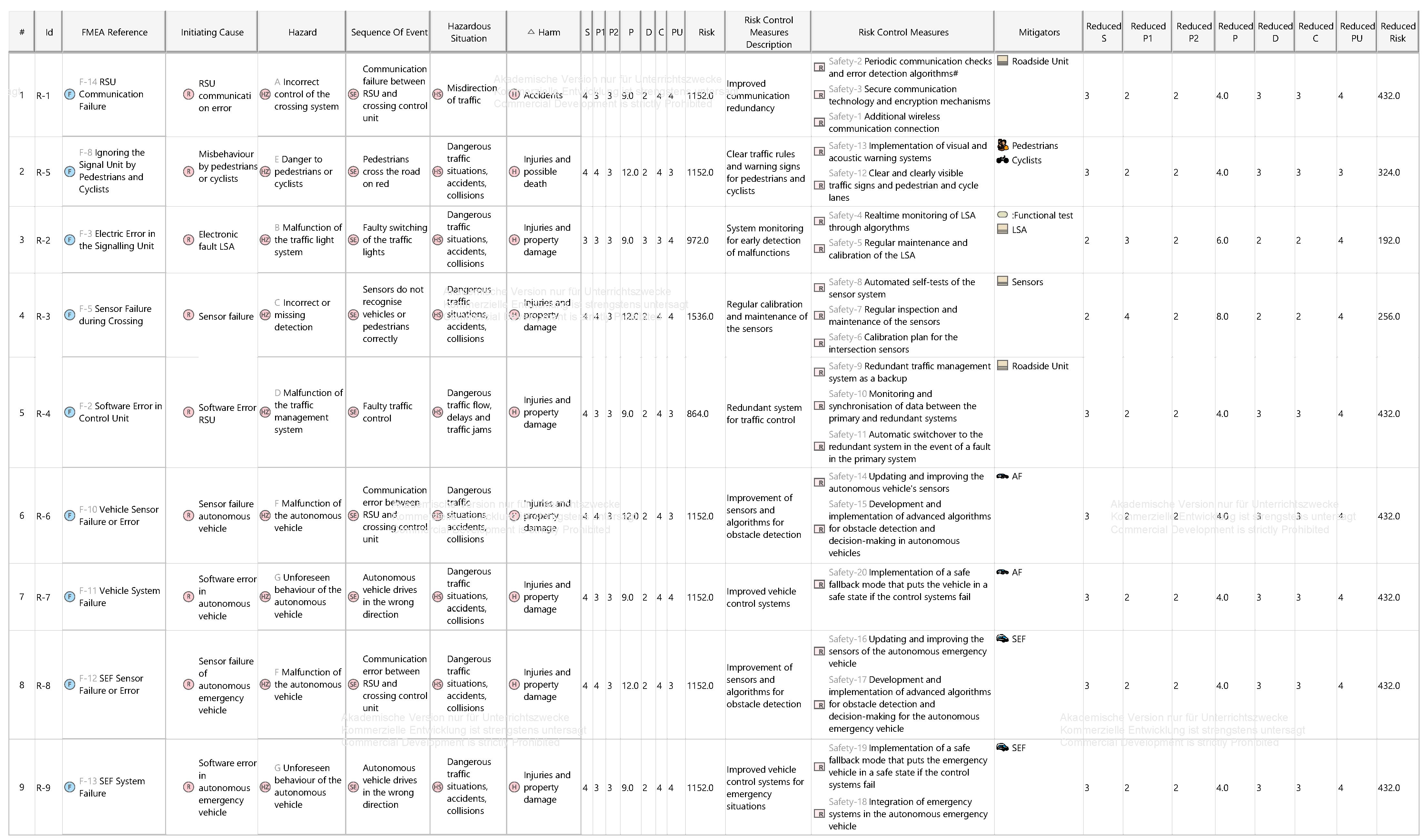 | 7 | Pedestrians/Cyclists | Safety | Accidents due to system failure | Technical failure | High | High | Low | Safety |
