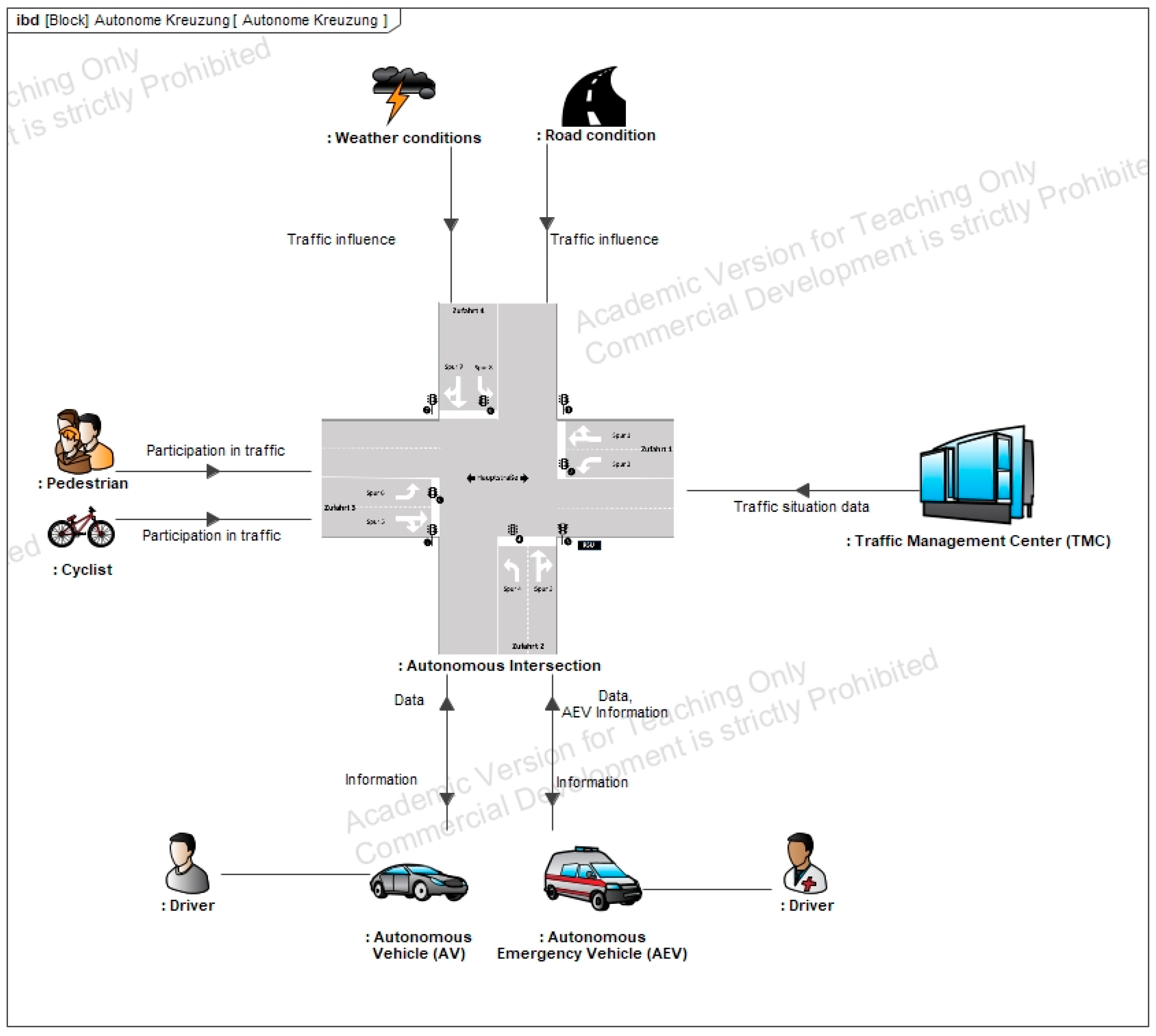 - Wang, C.; Ma, X.; Jia, L.; Lai, Z.; Yang, Z.; Yan, H.; Zhao, J. CPS Architecture Design for Urban Roadway Intersections Based on MBSE. J. Int. Con. Veh. 2024, 7, 190–204. [Google Scholar] [CrossRef]