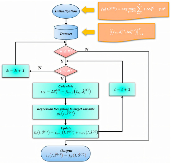where the term represents the gradient. To prevent overfitting and improve the model’s stability, a learning parameter (with ) is introduced. This process facilitates the optimization of the regression functions within the cascade, as illustrated by the diagram depicting the training progression for each .