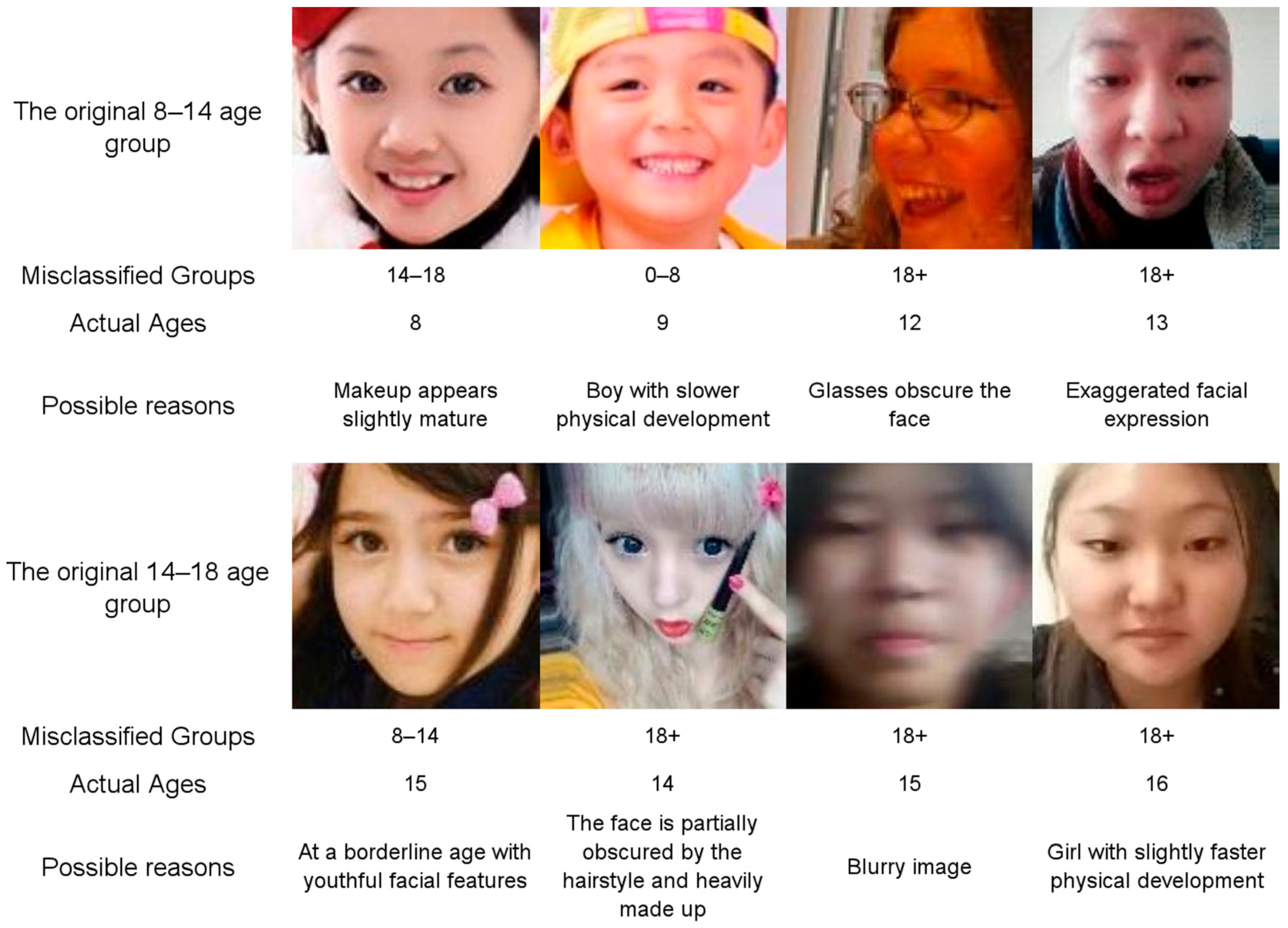 To mitigate online risks faced by juveniles, jurisdictions around the world have introduced specialised regulatory frameworks that establish age verification and content governance as fundamental requirements. In accordance with the European Union’s General Data Protection Regulation (GDPR), internet companies must obtain parental or legal guardian consent before processing the personal data of children under the age of 16 [2]. In the United States, the Children’s Online Privacy Protection Rule (COPPA), a regulation established to protect the online privacy of children under 13, requires enterprises to obtain parental consent before collecting children’s personal information. Enforcement is conducted by the Federal Trade Commission (FTC) [3]. China’s Minor Protection Law and Regulations on the Protection of Minors in Cyberspace cover all minors under the age of 18. It requires key platforms to implement a ‘Minor Mode’ and conduct annual protection impact assessments. Serious breaches are jointly enforced by the Cyberspace Administration of China and the Ministry of Public Security, which can result in the revocation of licences [4,5]. However, conventional age verification systems based on identity documents have inherent limitations, including identity misuse, technical circumvention and cross-border enforcement disparities, which undermine their effectiveness in global juvenile protection frameworks. To address these limitations, the integration of reliable biometric technologies, such as facial age estimation, is necessary to strengthen regulatory mechanisms and establish a more robust technical safeguard for online juvenile protection.