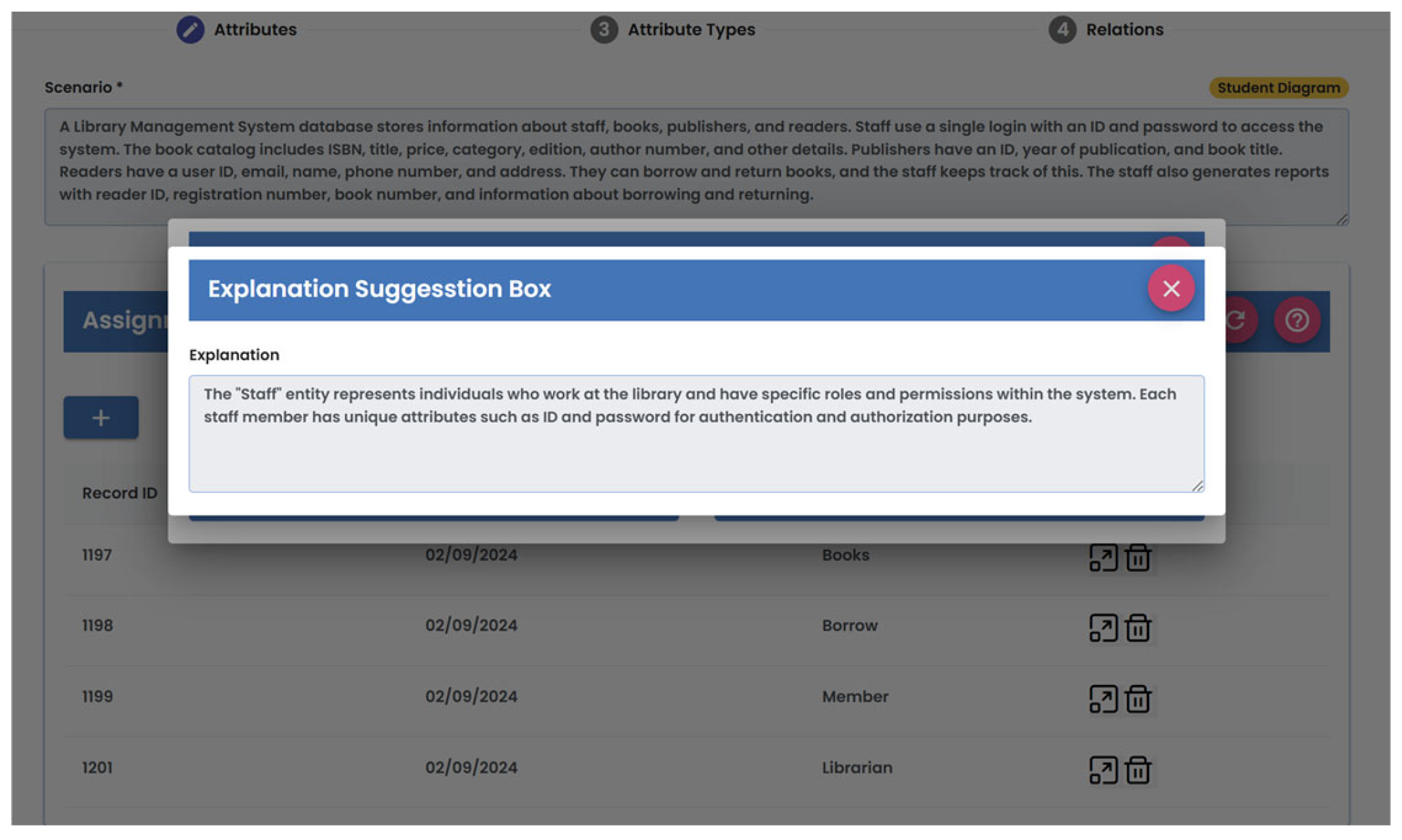 - Why explanations: describing the reasons a particular hint was given (e.g., why the student was classified as a “lower learner” at that point).