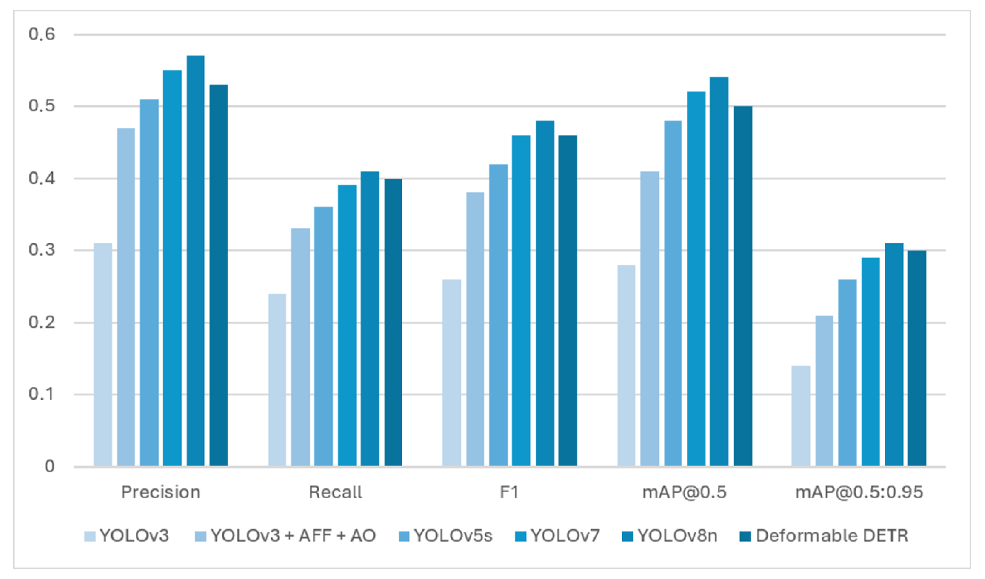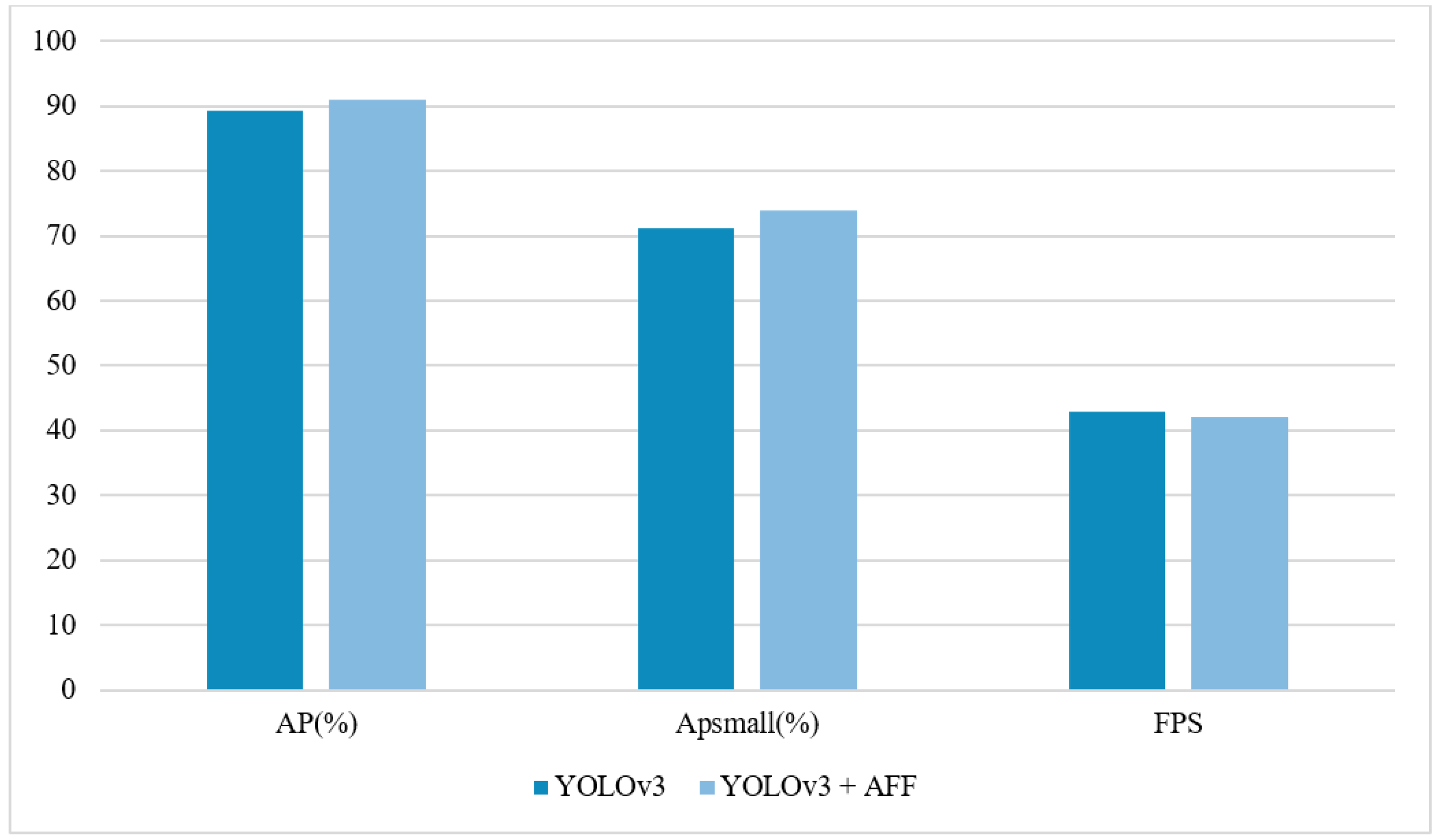 The results show that AFF integration improves the detection quality of small objects without significantly reducing performance. However, the use of an additional fully connected layer increases the number of model parameters and slightly reduces the processing speed (less than 2%). It should be noted that this compromise is justified by the increase in accuracy when solving wind farm maintenance tasks.