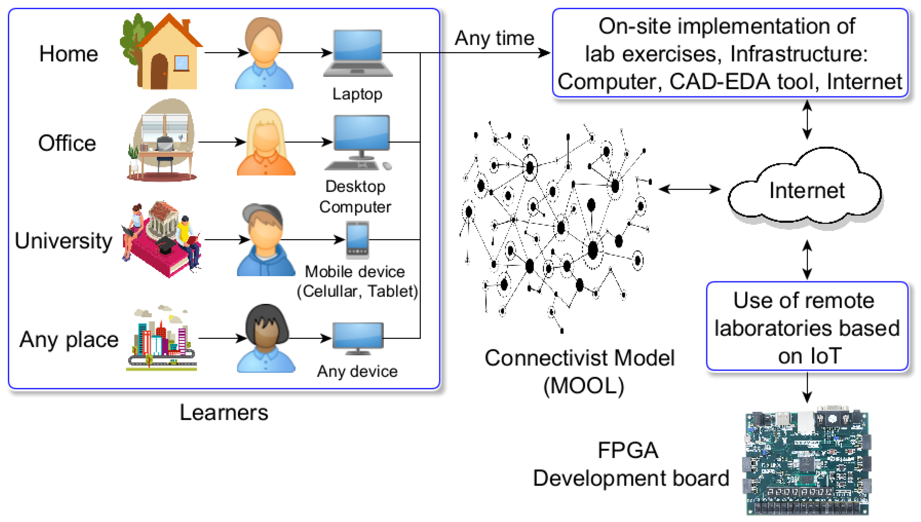 | Laboratory infrastructure | Personal computer, CAD-EDA tool and development board | Embedded system, internet connection, and development board |
