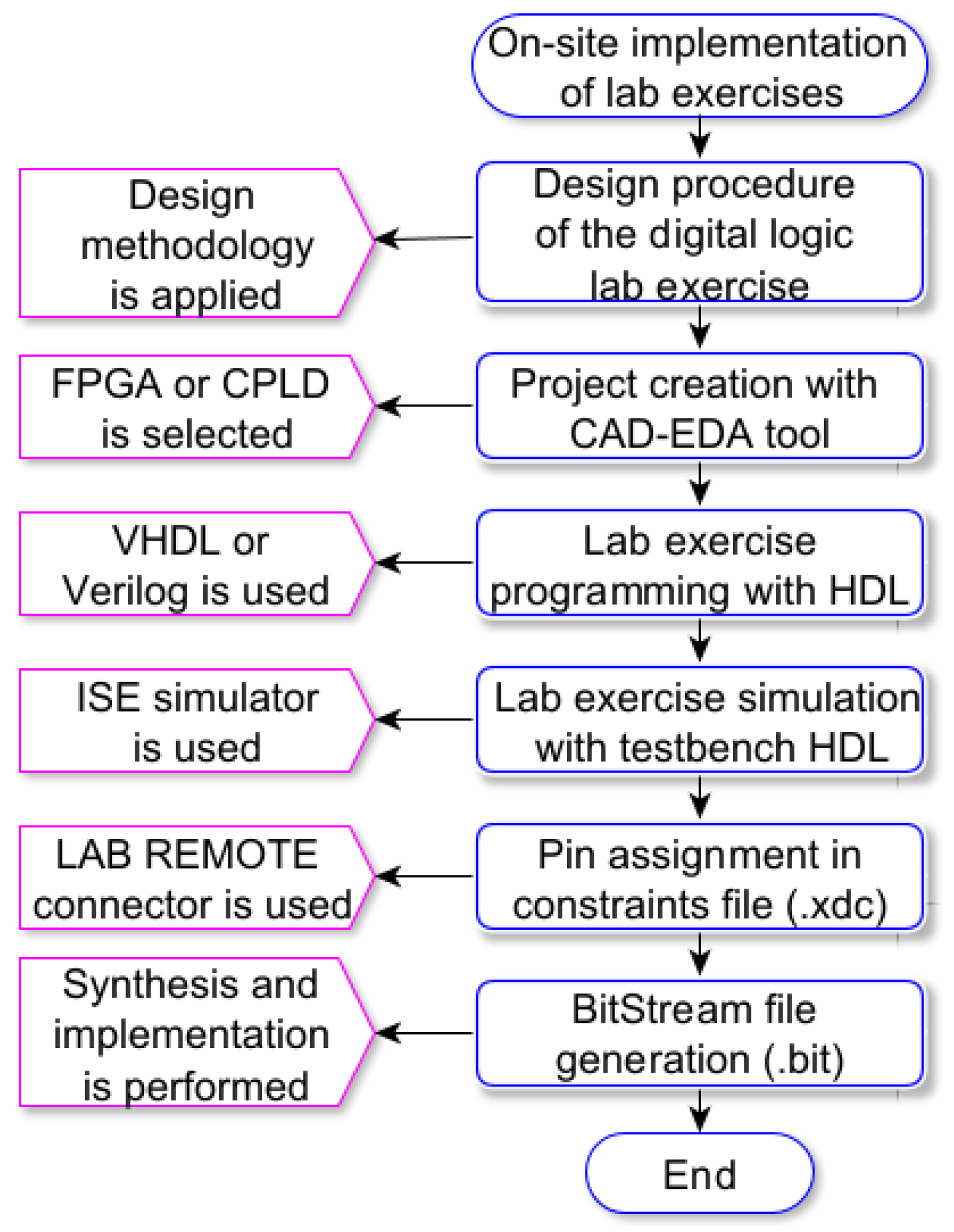 - Design procedure of the digital logic lab exercise: The Digital Design methodology is used to obtain the entity, the Algorithmic State Machine (ASM), the functional blocks, the datapath, and the control unit for the lab exercise.