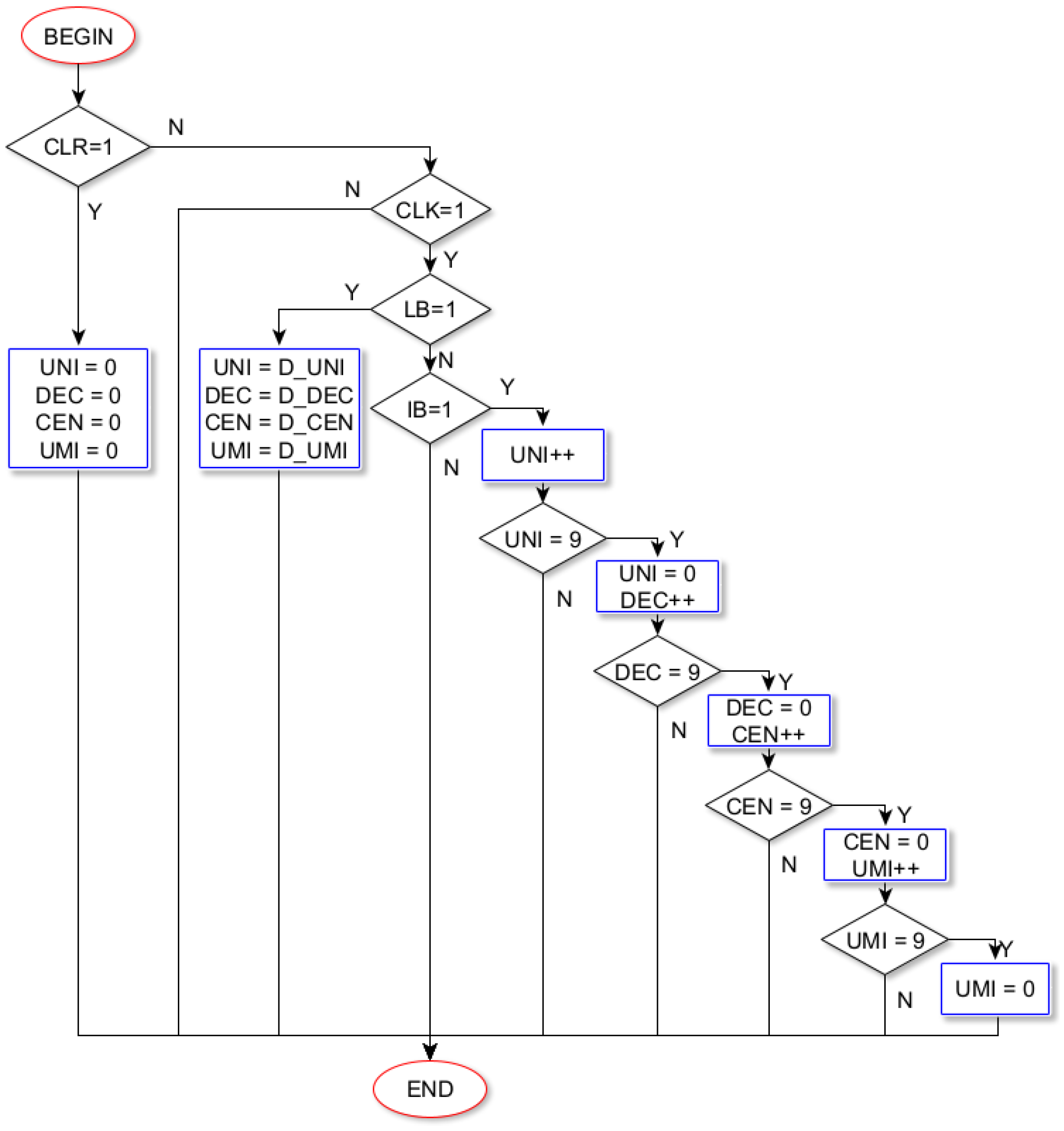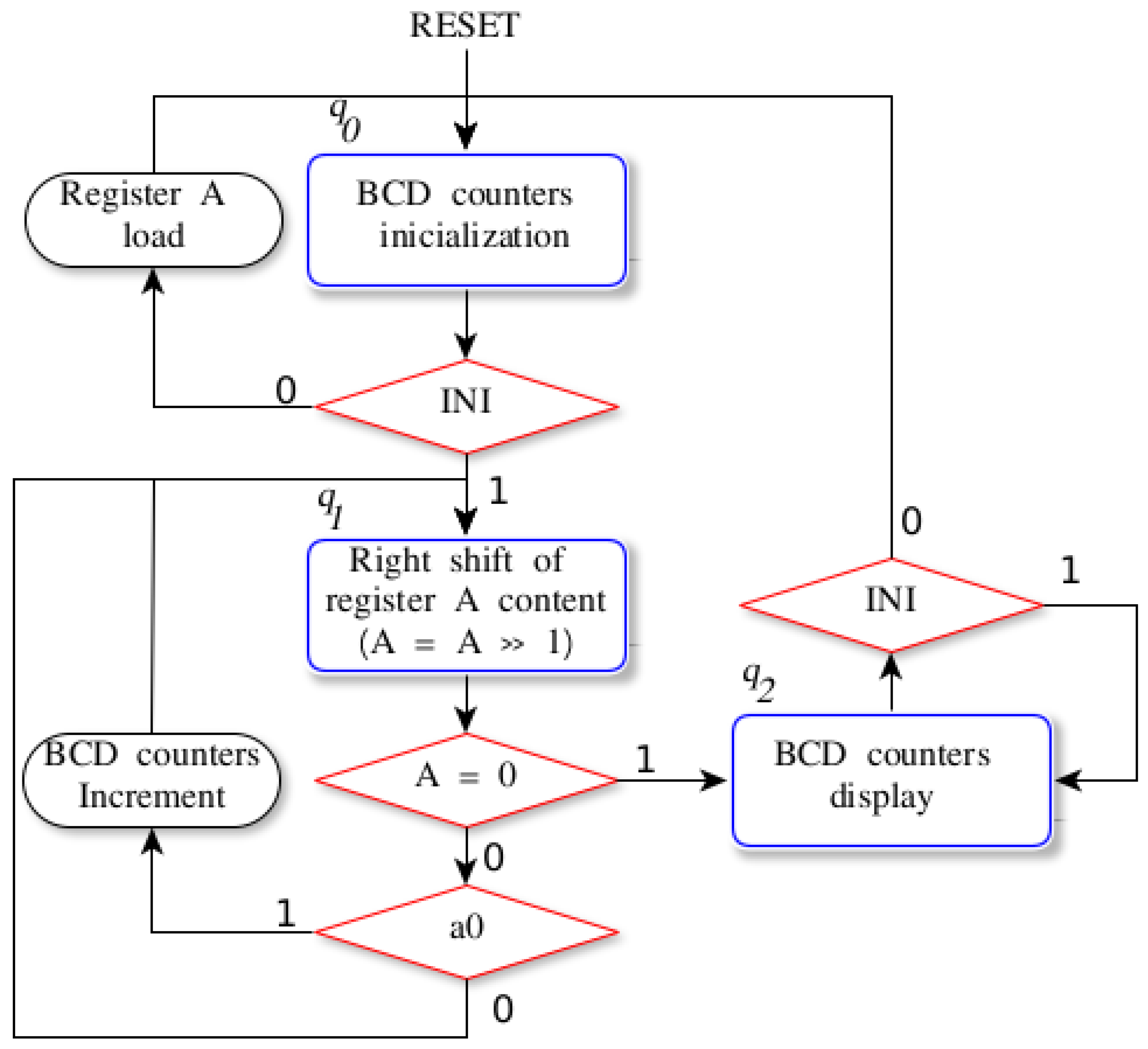- BCD Counters: They count the number of bits set to logic ‘1’ contained in Register A. The algorithmic diagram of the BCD counters is shown in Figure 10.