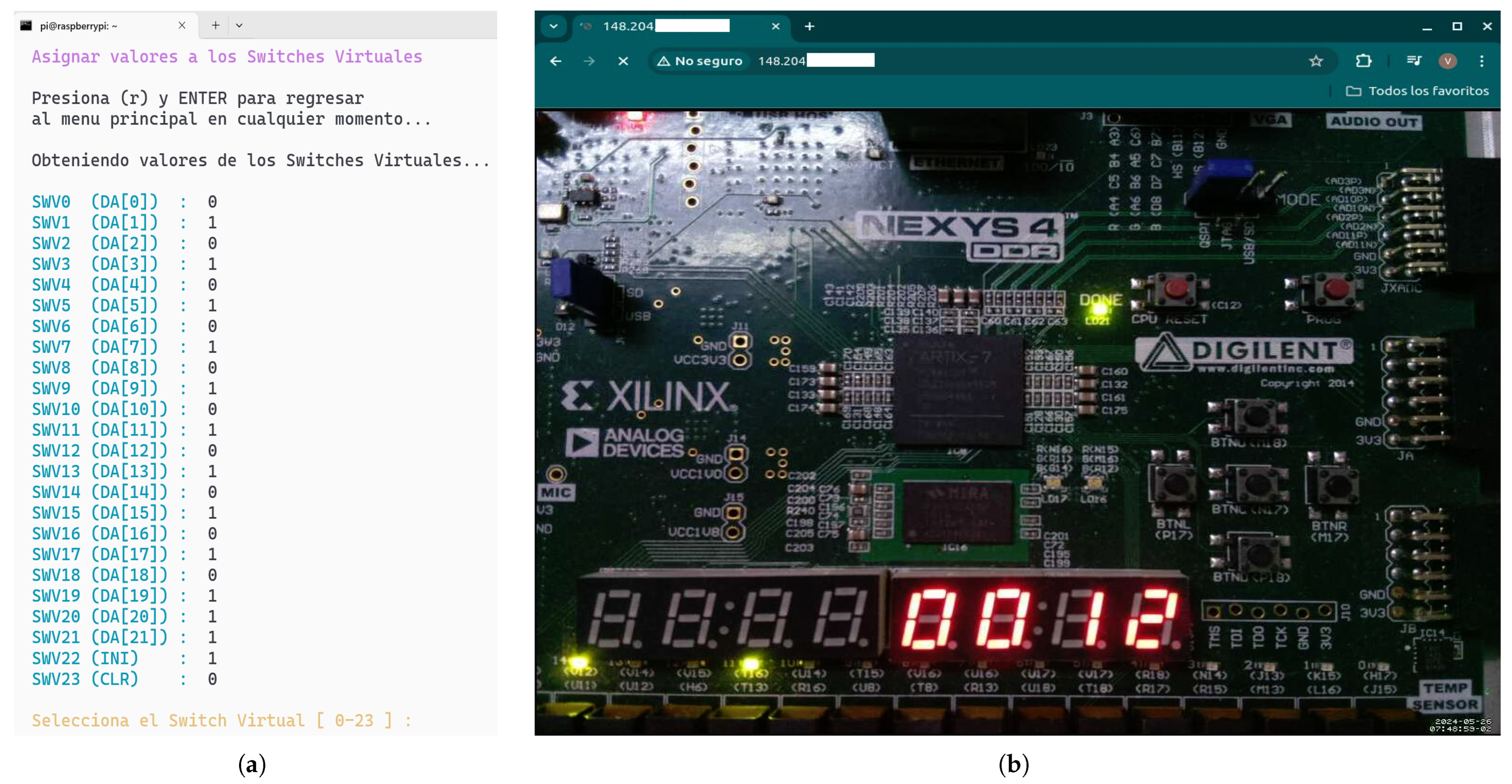 - Configure a Real-Time Clock/Calendar (RTCC): The SoC lacks an integrated Real-Time Clock Calendar (RTCC) for system date and time configuration; instead, it relies on a Network Time Protocol (NTP) server to synchronize the system clock. When an RTCC is required, it must be implemented as an external peripheral to the SoC. The SoC–FPGA interface provides a connector compliant with the IIC bus specification [59], enabling the integration of external devices. Consequently, a custom electronic board was designed to incorporate an external RTCC, model DS1338 from Analog Devices [60], into the SoC.