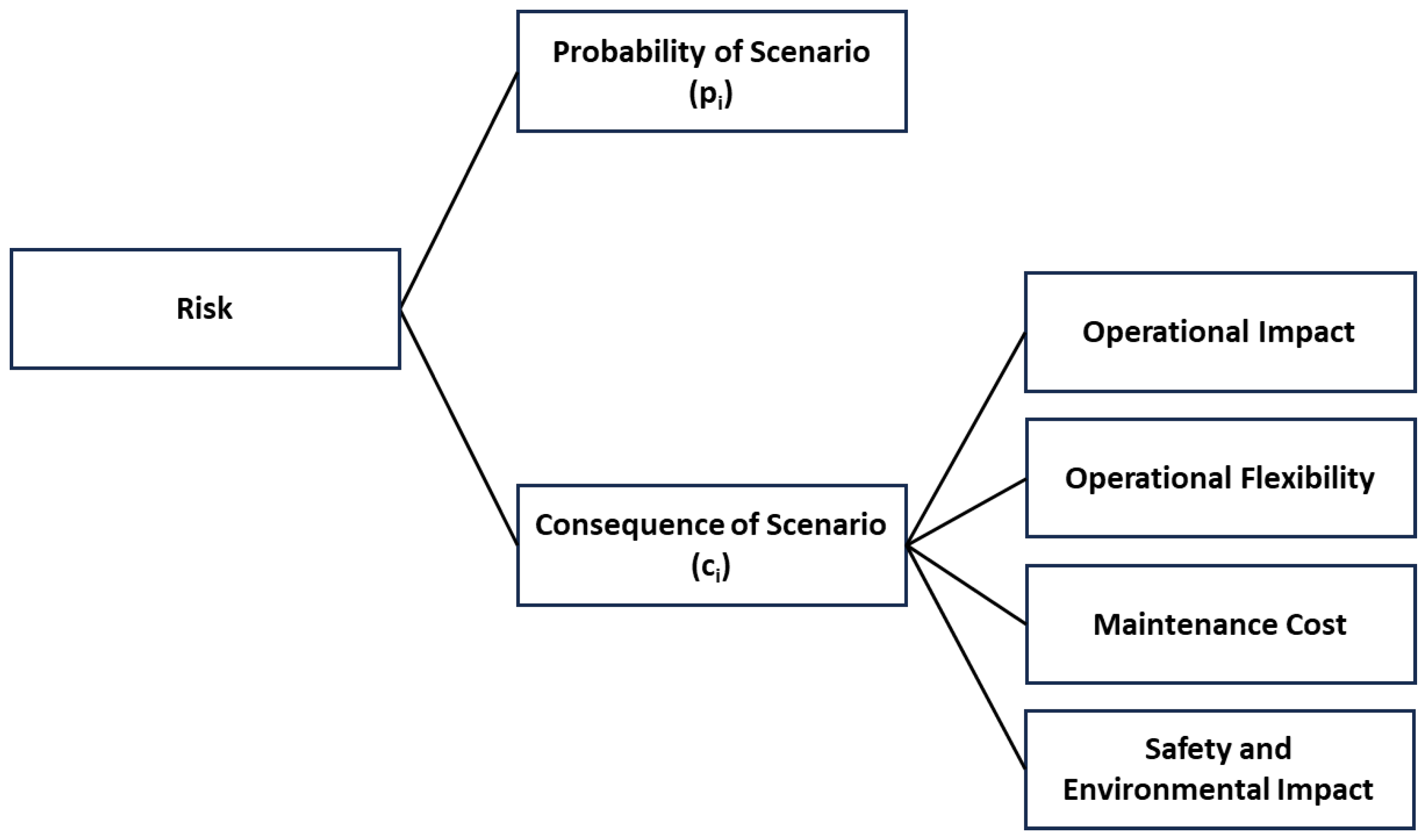 - Perfect maintenance effectiveness: Repairs are assumed to fully restore failed MIs to a good-as-new condition, with no accumulation of degradation. Assuming good-as-new restoration prevents cumulative degradation from influencing results, providing a clear baseline for evaluating consequence. This simplification supports interpretability rather than defining a methodological requirement.