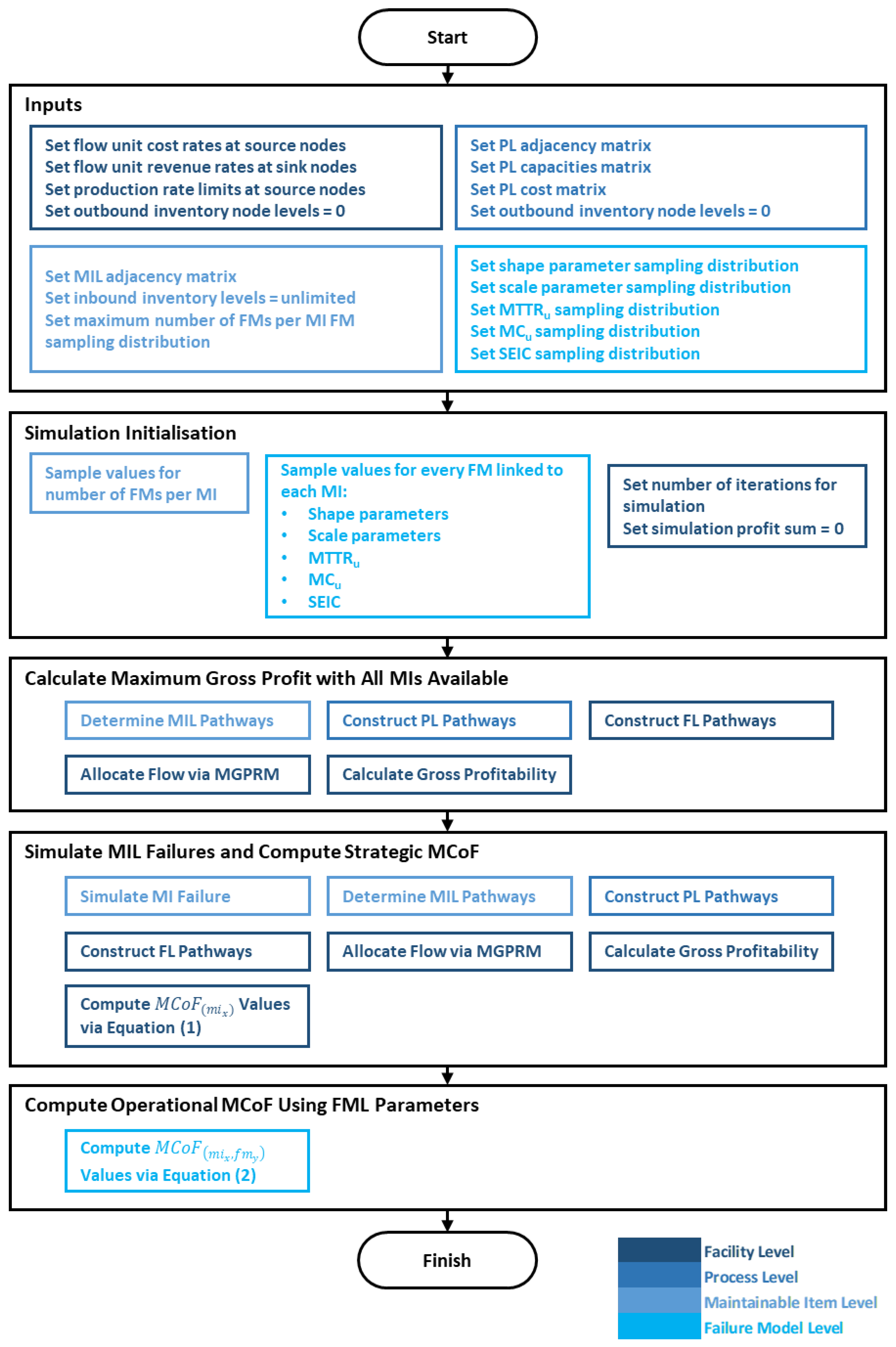 - Step 4—Compute Operational MCoF Using FML ParametersFor each FM of each MI, the operational MCoF () is calculated using Equation (2).