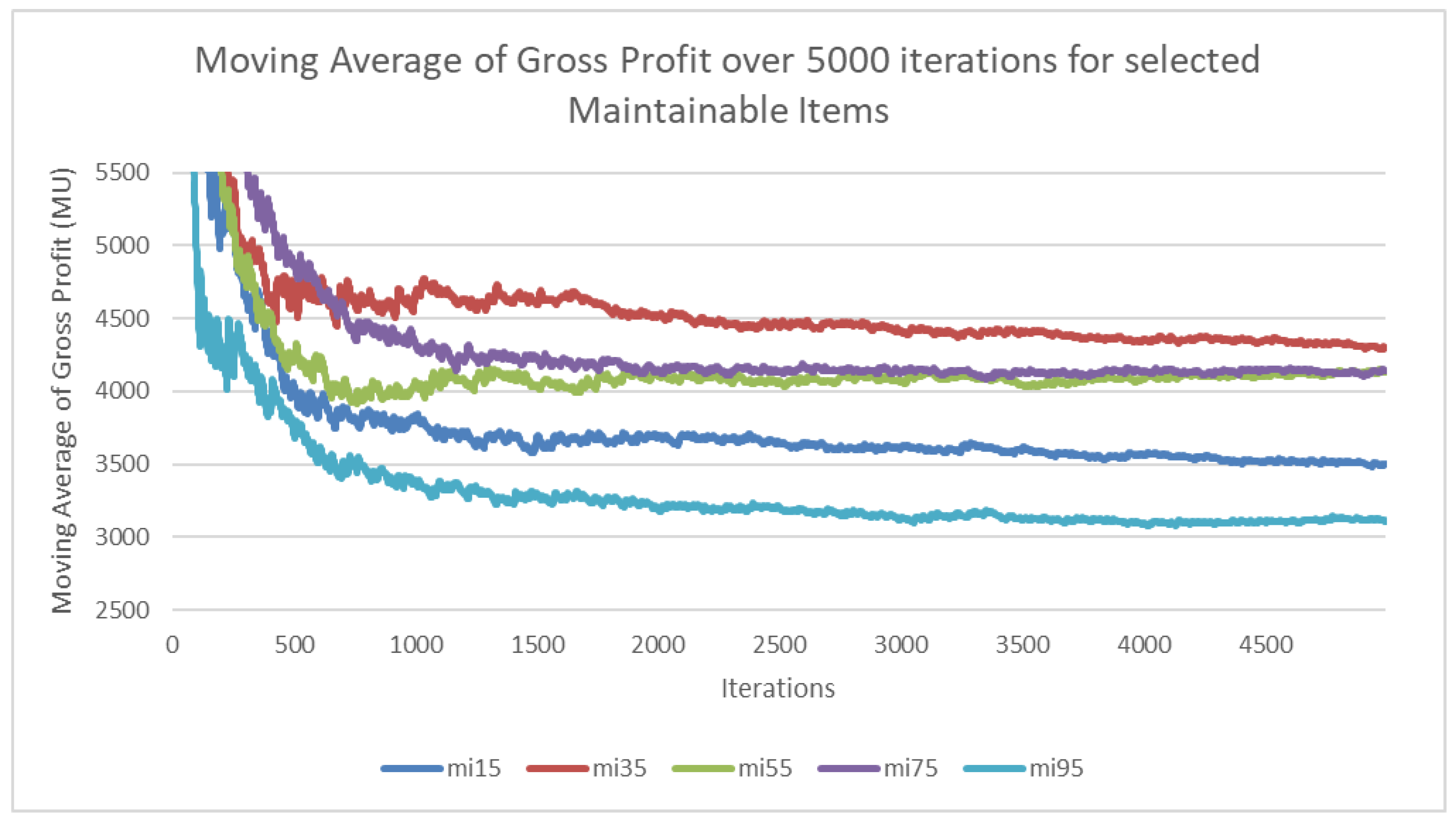 - Step 2—Calculate Maximum Gross Profit with All MIs AvailableThe simulation is executed over a fixed number of iterations with all MIs operational. Each iteration simulates a single shift. Within each iteration: