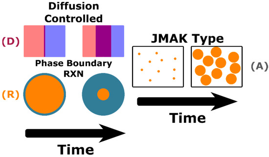 Physical representation of JMAK, heterogenous diffusion, and geometric contraction kinetic transformations. RXN is an abbreviation for reaction.