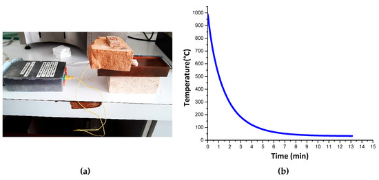 Measurement method of the cooling rate during thermal shock: (a) device for measuring the temperature with a thermocouple; (b) cooling curve.