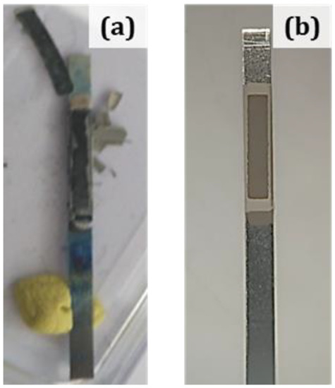 One option to reduce temperature constraints arising mainly from the mismatch between thermal expansion coefficients is to reduce PZT or SS layer thicknesses. Reducing the PZT layer’s thickness is not appropriate since it will directly affect the piezoelectric performance. Therefore, by reducing the SS substrate (initial thickness: 250 µm), delamination issues can be limited. Two different SS301 substrate thicknesses were studied: 25 µm and 100 µm. Samples were fabricated using the same thick-film and SPS process using BaCO3 as a protective layer. Even if a good adhesion of the PZT layer was obtained, regardless of the thickness of the substrate (25 or 100 µm), further adaptation of the screen-printing process is required to guarantee a suitable quality of printing.