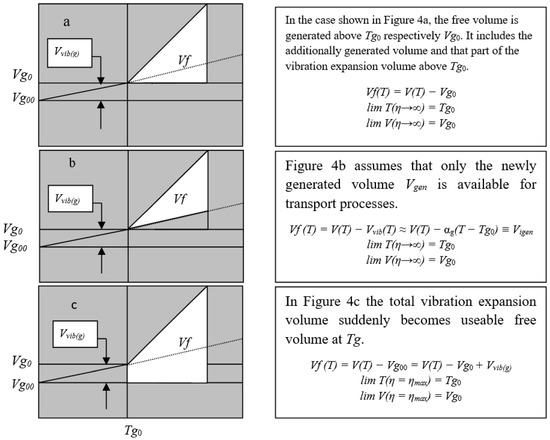 Three differently defined “free” volumes will be discussed below (Figure 4). One case implies different viscosity behavior at the limits of the liquid state.