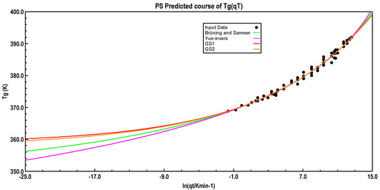 - Schawe, J.E.K. Measurement of the thermal glass transition of polystyrene in a cooling rate range of more than six decades. Thermochim. Acta 2015, 603, 128–134. [Google Scholar] [CrossRef]