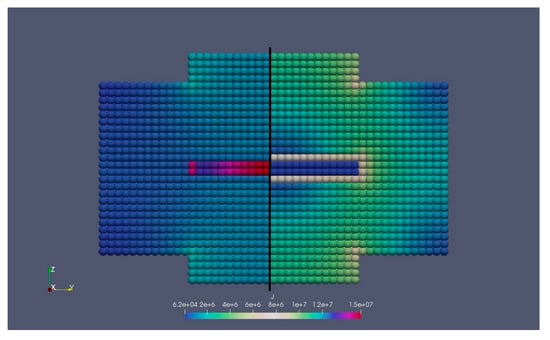 Figure 6 shows the current density distribution in two samples of alumina and copper. Current density plays a major role in heating. It can be seen that the electric current in the die flows around the alumina sample so that the highest current densities are observed at the contact boundary. The alumina sample is in a hot graphite “coat,” which heats it due to heat transfer. If we consider a sample of alumina surrounded by graphite as a defect, then the “coat” around alumina can be explained as pinning a charge on the defect. For copper, the situation is different. The highest current density is observed in the central part of the sample, due to which the copper is directly heated. The current concentration at the edges of the copper can be explained by the skin effect.