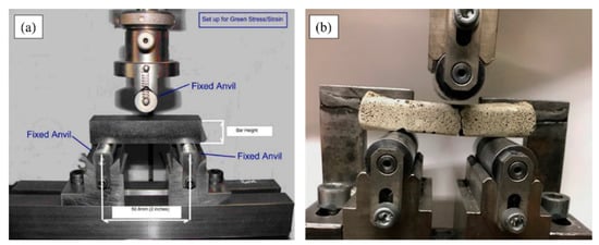 Images of stand with the reference sample used for testing the flexural strength (a) and cracked sample of as-dried Thermacoat™ with 0.7 % of polypropylene fibers (b).