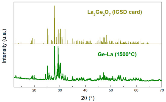 XRD patterns of Ge-La after thermal treatment with the ICSD card of La2Ge2O7 [35]. Adapted with permission from Ref. [35]. Copyright 2022, Elsevier.