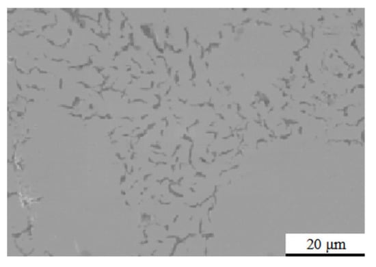 The Si3N4 ceramic cube with a side length of 7 mm was provided by Shanghai Silicate Research Institute (Shanghai, China). The Ht250 cast iron with a side length of 7 mm was provided by the Engine Research Institute (Tianjin, China); the SEM micro-morphology distribution of graphite on its surface is shown in Figure 1, and the main chemical composition is shown in Table 1. The interlayer materials used include 10-μm-thick Ti foil, 20-μm-thick Cu foil, and a 250-μm-thick Kovar alloy sheet (brand 4J29) whose main chemical composition is as shown in Table 2. Before joining, the surface of Si3N4 to be connected was smoothed with W3.5 grinding paste, and the surfaces of the Ht250 cast iron, 250-μm-thick Kovar alloy sheet, 20-μm-thick Cu foil, and 10-μm-thick Ti foil were polished with metallographic sandpaper to remove the surface oxide film and impurities, followed by acetone ultrasonic cleaning for 10 min.