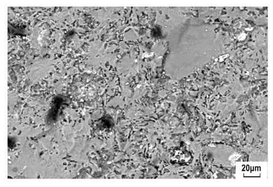 SEM image of ceramic paste texture with evidence of developed vitrification. The magnification 368×.