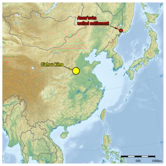 Location of the Cizhou kiln and Anan’evka walled settlement at the map of the Asia-Pacific Region.