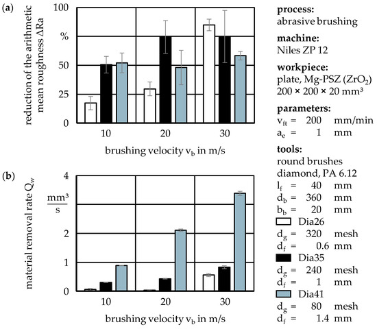 Table 2. For consistency, all workpieces were brushed only once and in counter rotation, meaning that the brushing velocity v