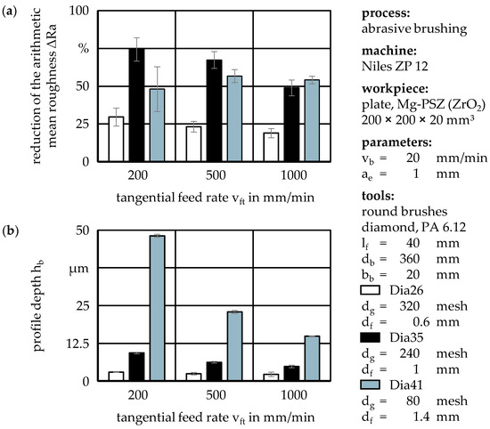 ft, previous studies agree on a proportional response of the work result, meaning that one-time brushing at a decreased tangential feed rate v