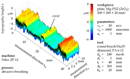 Prior and subsequent to brushing, the surface roughness of each workpiece was measured with a tactile surface measurement device of type Nanoscan 855 by