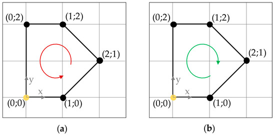 Example of perimeter direction change; (a): CCW, (b): CW; (X;Y).
