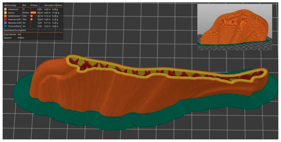 After the light-based scanning and remodeling of the fragment, the CAD-Data from the fragment was supplied by COX3D Pirna, Germany. The 3D data is exported as STL-file (Standard Tessellation Language). This file is then post-processed to achieve the different printing strategies elaborated in Section 2.2 and Section 2.3.