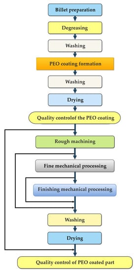 Manufacturing of parts with operational surfaces strengthened with PEO coatings was carried out by the developed technological process (Figure 1).