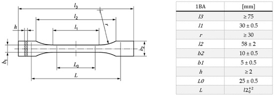 Geometry and dimensions of 1BA EN ISO 527-2:2012 tensile test specimen 19.