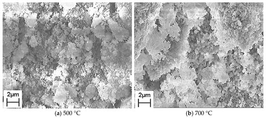 The SEM images of the Ca, CaNa, Na ceramic samples after firing at temperatures of 500 °C, 700 °C and 900 °C are shown in Figure 10.