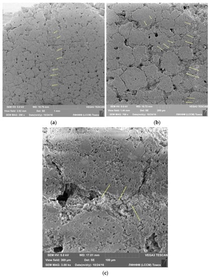 - Kibitkin, V.; Grigoriev, M.; Burlachenko, A.; Solodushkin, A.; Savchenko, N.; Rubtsov, V.; Tarasov, S. In-Situ Investigation of Strain Localization in Sintered, Porous Segmented Alumina. Materials 2021, 14, 3720. [Google Scholar] [CrossRef]