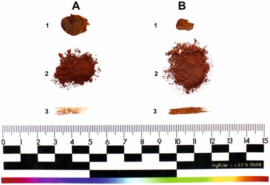 - Iordanidis, A.; Garcia-Guinea, J. A preliminary investigation of black, brown and red coloured potsherds from ancient Upper Macedonia, Northern Greece. Mediterranean Archaeol. Archaeom. 2011, 11, 85–97. [Google Scholar]