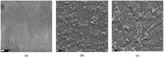 SEM micrographs of the samples sintered by SPS at: (a) 1300 °C; (b) 1350 °C and (c) 1400 °C.