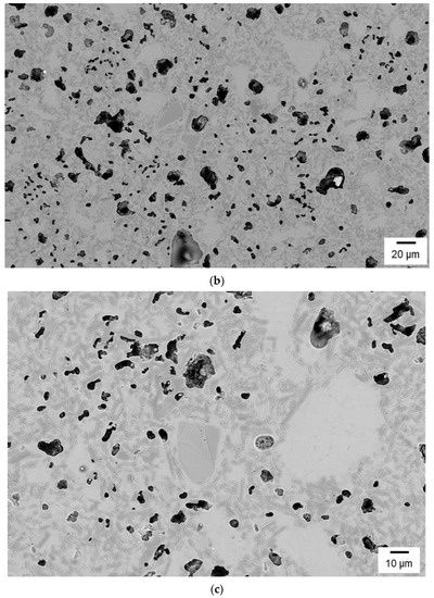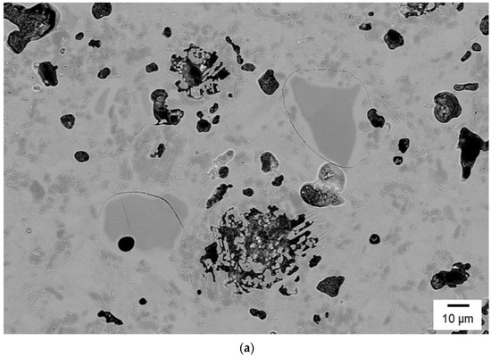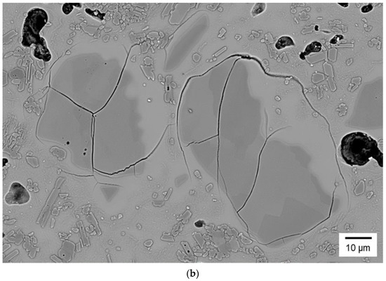The formed stresses can be estimated based on Weyl’s micromechanical model, Eshelby’s inclusion model, or Davidge and Green [10,11,12,13,14]. In a study in which all three models were considered, the critical diameter of the quartz grains was found to be between 8.5 µm (Weyl’s micromechanical model) and 8.9 µm (Eshelby’s equivalent inclusion model) [22]. The critical quartz grain diameters determined in the study and present work agree well in magnitude.