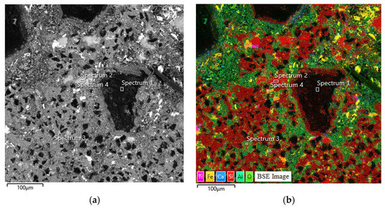 SEM image (a) and distribution of elements (b) in the sample No. 20.