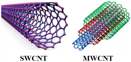 Schematic diagrams showing different types of CNTs: single-walled and multi-walled CNT. Reproduced with permission from Ref. [45], Copyright 2014 Elsevier.