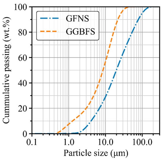 Particle size distribution of GFNS and GGBFS.
