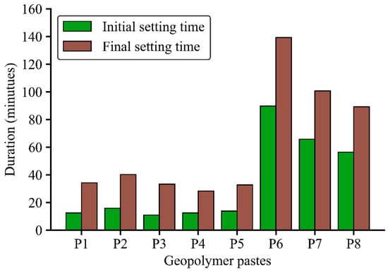 Initial and final setting time of geopolymer pastes.