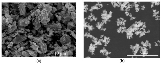 SEM micrograph of doped ZnSe powders (a) mechanically crushed; (b) synthesized by co-precipitation. Reprinted with permission from [101] for (a), © Optica Publishing Group; [89] for (b), © The American Ceramic Society 2020.