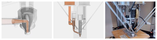 - Craveiro, F.; Bártolo, H.; Duarte, J.; Bártolo, P.J. A Multi-Material Extrusion Nozzle for Functionally Graded Concrete Printing. In Industry 4.0–Shaping The Future of The Digital World; CRC Press: Boca Raton, FL, USA, 2020; pp. 130–135. ISBN 978-0-367-82308-5. [Google Scholar]