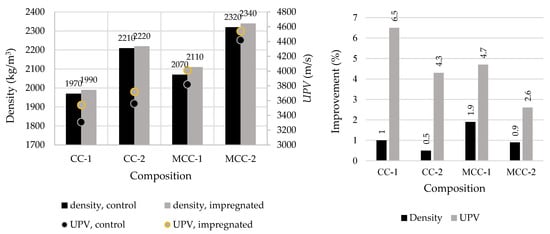 Results of density and UPV of control and impregnated samples.