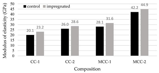 Modulus of elasticity of control and impregnated samples.