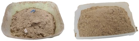 The initial phase of this study involved the drying of all the aforementioned materials in a laboratory electric dryer of the SCN/400/DG model, maintaining a temperature of 105 °C for a duration of 24 h. Subsequently, the clay and sand materials were subjected to preliminary crushing using a jaw crusher, specifically, model A92, featuring jaws with a 2 mm clearance. In the case of the clay material and the RDF–sand mixture, intended for the formulation of mixture no. 3 (TZRDF10P), these materials underwent further processing through a laboratory hammer mill, designated as Mod. HM/530 Series. This mill utilized a 1 mm mesh screen to facilitate the comminution process.