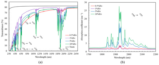 The absorption cross-sections of the Ho:Lu2O3 ceramics σabs were then calculated for all dopant contents from linear absorption coefficient αλ and by using Equations (4) and (5):