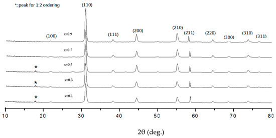 - Kim, I.-T. Effects of non-stoichiometry and chemical inhomogeneity on the order-disorder phase formation in the complex perovskite compounds, Ba(Ni1/3Nb2/3)O3and Ba(Zn1/3Nb2/3)O3. J. Mater. Sci. 1995, 30, 514–521. [Google Scholar] [CrossRef]