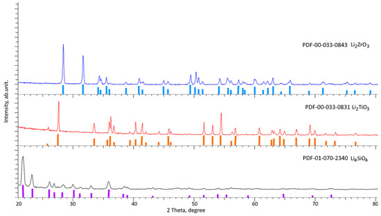 - Abyshev, B.; Shlimas, D.I.; Zdorovets, M.V.; Arshamov, Y.K.; Kozlovskiy, A.L. Study of radiation resistance to helium swelling of Li2ZrO3/LiO and Li2ZrO3 ceramics. Crystals 2022, 12, 384. [Google Scholar] [CrossRef]