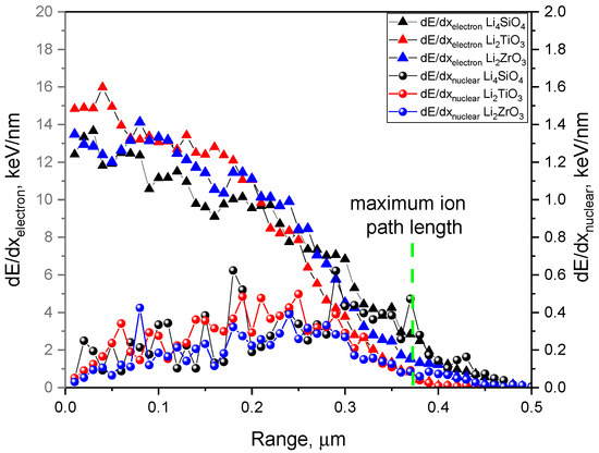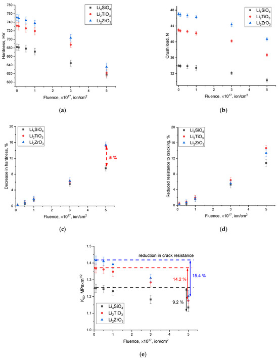 | Fluence, ion/cm2 | Li4SiO4 | Li2TiO3 | Li2ZrO3 |